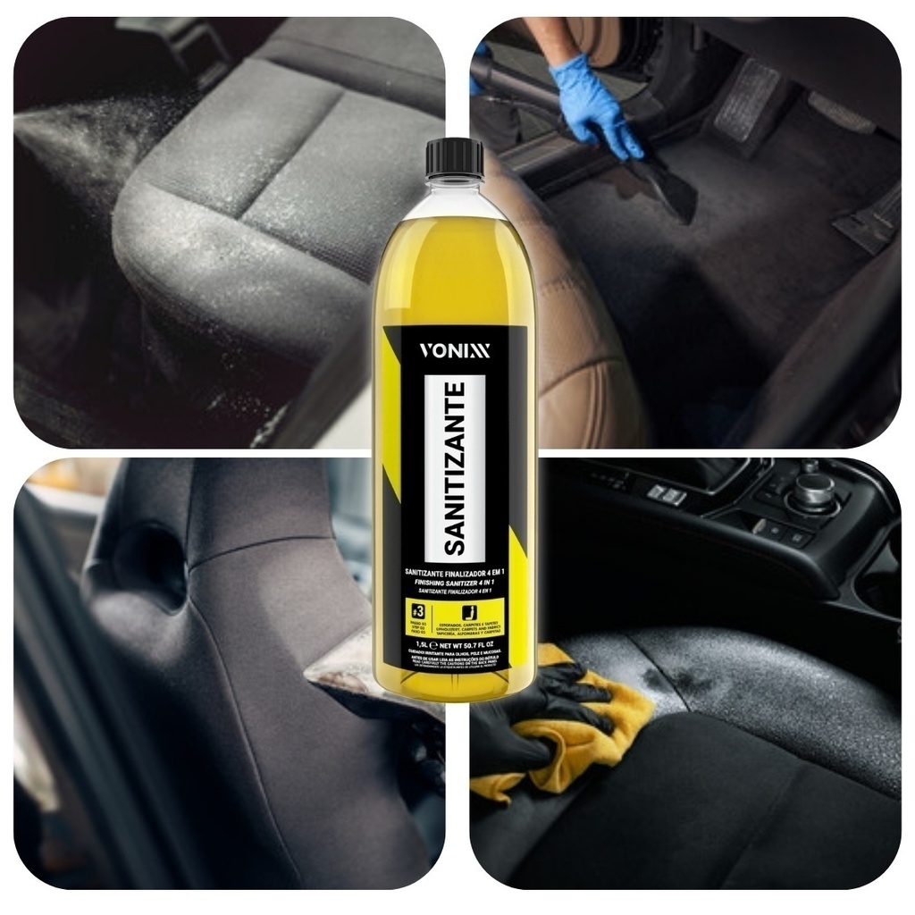 Sanitizante 1,5l Vonixx, garanta um ambiente mais limpo e seguro, desenvolvido especialmente para higienizar superfícies internas do veículo, ele elimina microrganismos e odores, deixando um leve perfume e sensação de limpeza duradoura.